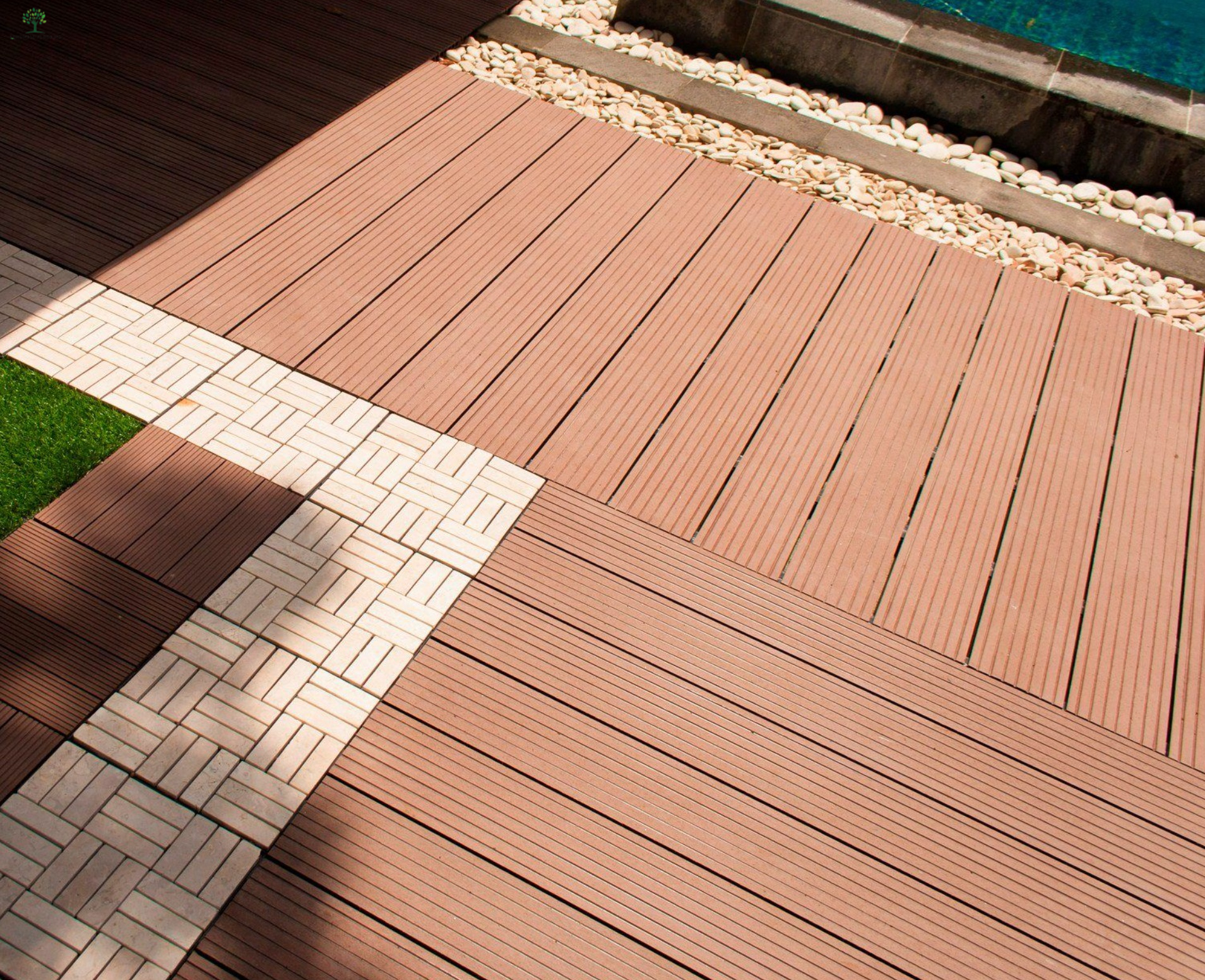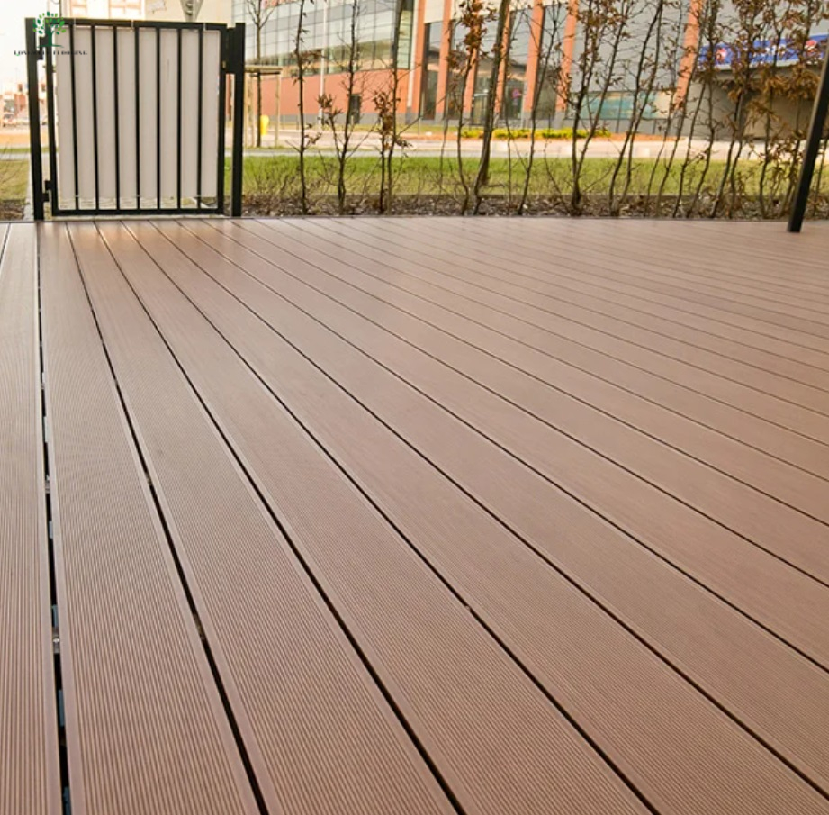 Композитный настил из ДПК 1-го поколения не содержит вредных химических компонентов, таких как формальдегид, он безопасен и удобен и обладает отличными функциями, такими как водонепроницаемость, защита от коррозии, защита от плесени, защита от растрескивания, защита от моли, тепло- и звукоизоляция, стабильность. и не требует обслуживания.